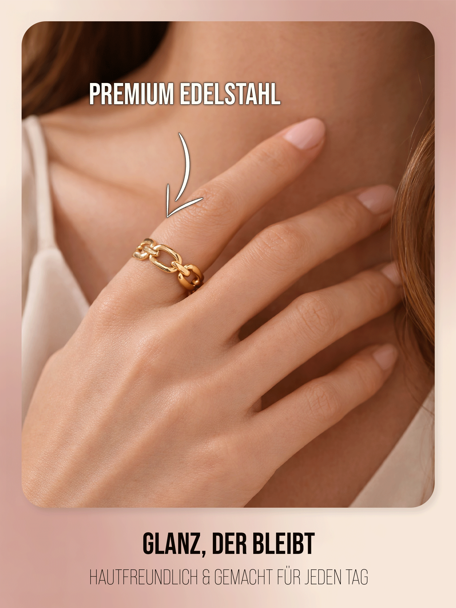 Die Kombination des mordernen Kettenglieder Looks, mit hochwertigen Materialien und unserer Verarbeitung in Juweliersqualität macht diesen Ring zum perfekten Accessoire für den Alltag, wie auch jeden besonderen Anlass.