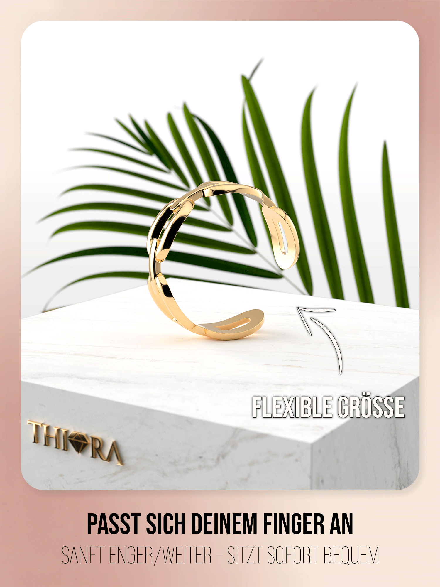 - Ringgröße: Variabel anpassbar, durch sanftes biegen